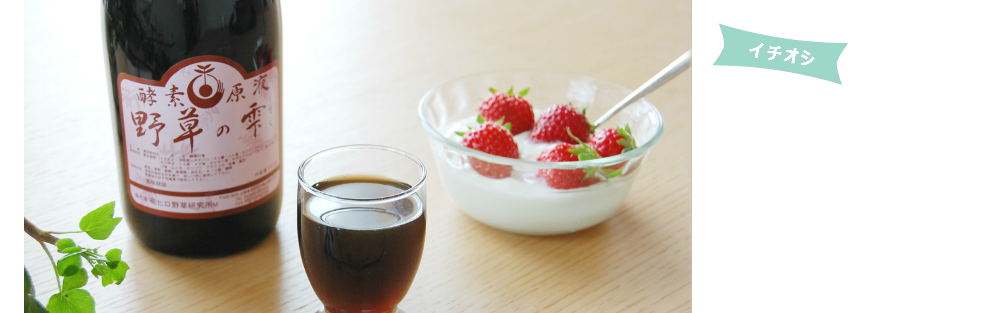 「野草の雫」は私たちの健康維持、美容に欠かせない植物性発酵飲料です。厳選した野草や新鮮な野菜、果物、海藻、貝化石など、50種類以上の原料に乳酸菌や酵母菌、その他の有効微生物を共棲(共生)培養し、糖質を加え、毎日手作業で攪拌します。菌の分泌する酵素で1年以上の長い歳月をかけて自然に発酵熟成させた植物性発酵飲料です。